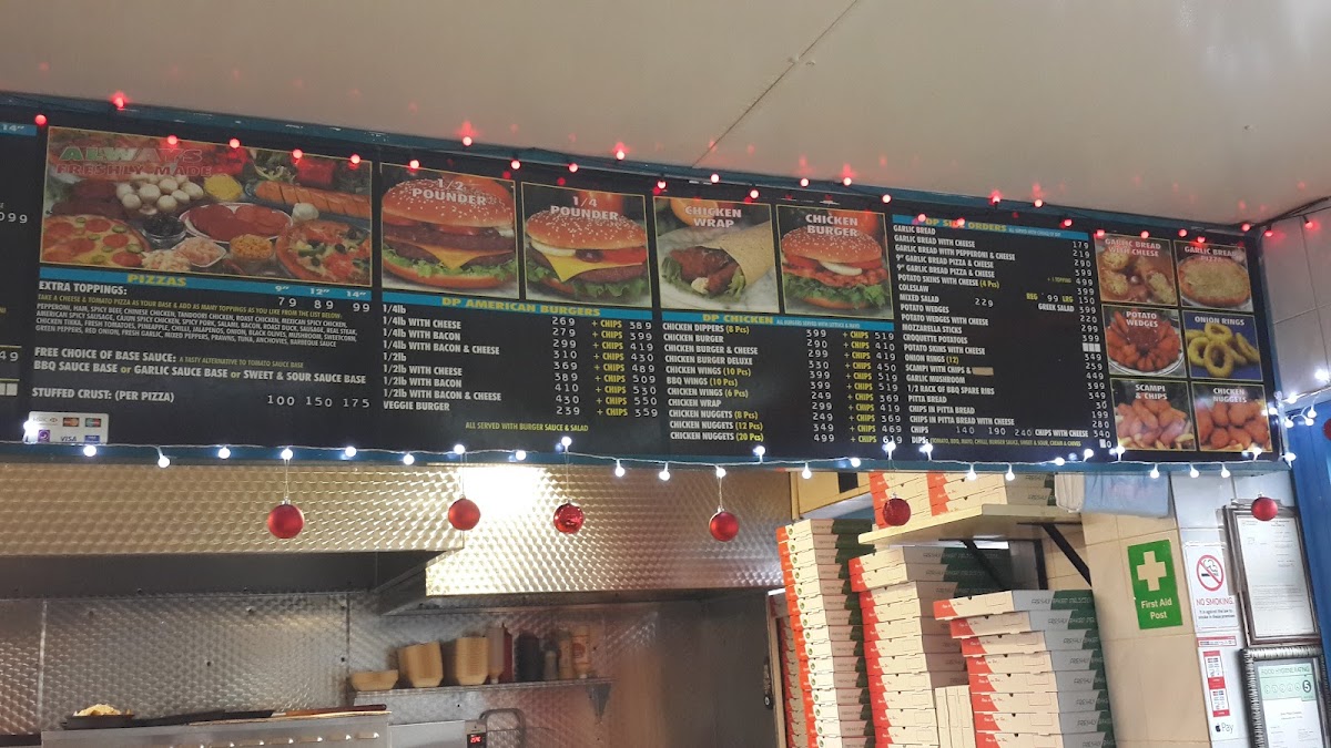 The menu at The Pizza Direct Deal offers a range of satisfying options, especially for those craving hearty meals. Their selection of Dp American Burgers includes a variety of choices such as the 1/4lb With Cheese (£5.00), 1/4lb With Bacon (£5.50), 1/4lb With Bacon & Cheese (£5.75), and even a 1/2lb With Bacon (£7.50) for those looking for a larger portion. For vegetarians, there’s the Veggie Burger (£5.00). On the Dp Chicken side, you can enjoy Chicken Dippers (£4.00), a simple Chicken Burger (£4.50), or go all out with the Chicken Burger & Cheese (£5.00) or the indulgent Chicken Burger Deluxe (£6.00). For chicken wing lovers, Chicken Wings (£4.50) are also on the menu. As for side dishes, they offer a variety of mouth-watering options, including Garlic Bread (£2.50), Garlic Bread With Cheese (£3.00), and the unique Garlic Bread With Pepperoni & Cheese (£3.50). You can also opt for a 9" Garlic Bread Pizza & Cheese (£5.00) or indulge in Potato Skins With Cheese (£4.00). This diverse menu provides something for everyone, whether you're in the mood for a filling burger, tasty chicken, or delicious sides.
